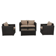 With seating for up to four people, this sofa set is ideal for family and friends to enjoy the great outdoors. The coffee table features a tempered glass top. This design is not only aesthetically pleasing, but also exceptionally durable. The surface of the tempered glass is smooth and easy to clean. Even in the complex and changing outdoor environment, it can easily deal with all kinds of stains and scratches.