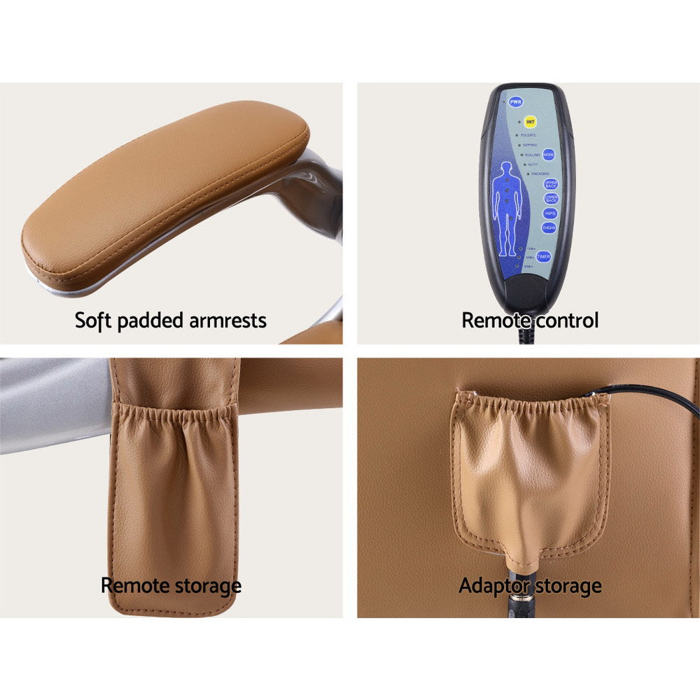 Eight vibration massage points at 4 levels - Upper back, lower back, hips, and thighs