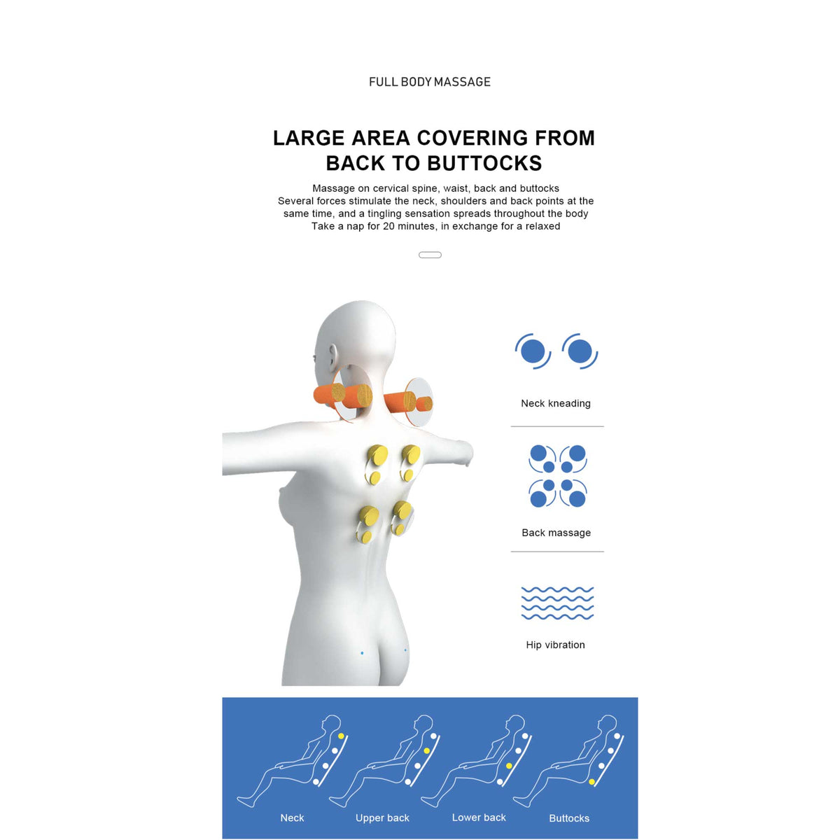 - 8 heating kneading massage nodes in total for upper back, whole back and lower back