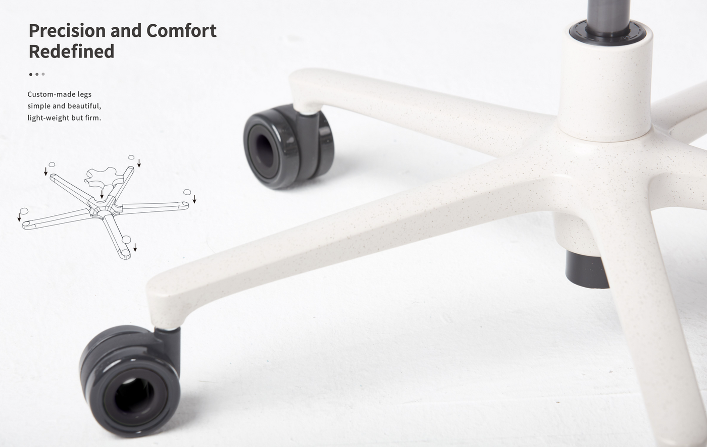 Precision and Comfort Redefined: The custom-made legs are not only aesthetically pleasing but also ensure stability and durability, making the chair light-weight yet firm.