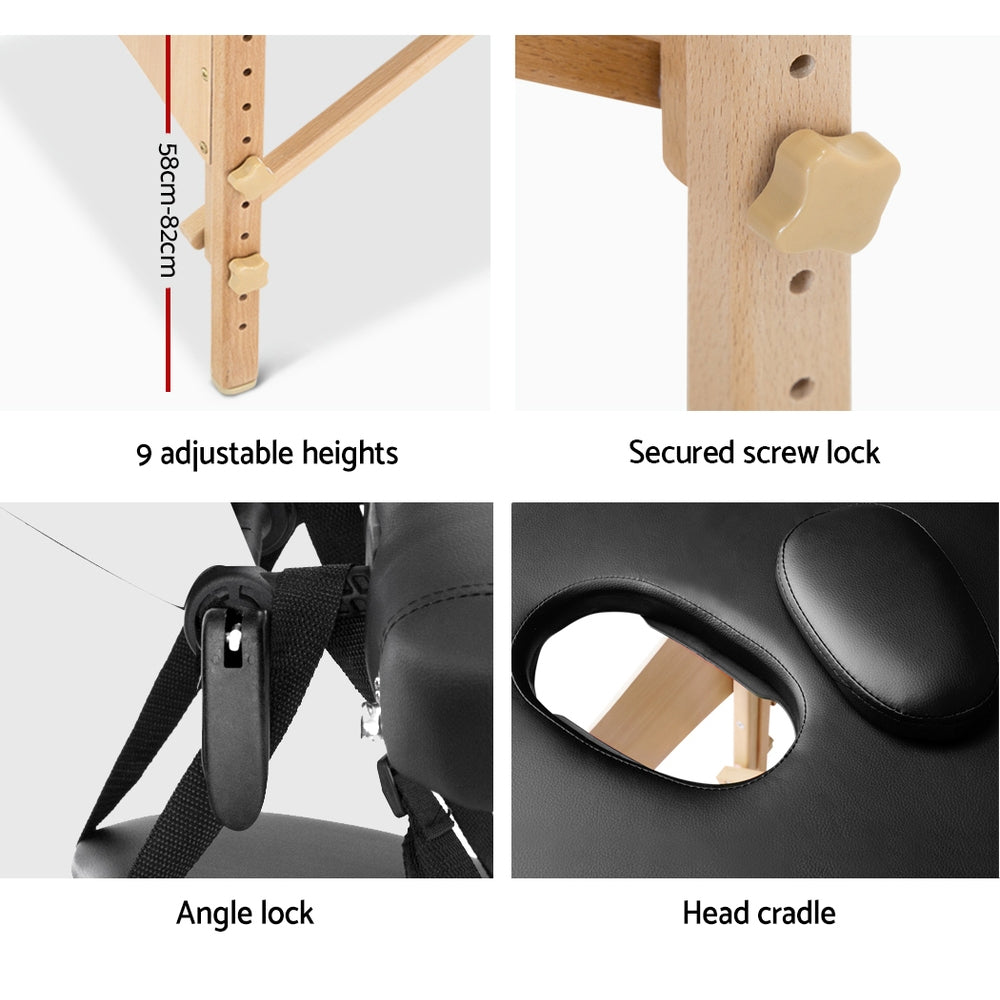 Featuring 9 adjustable heights and removable face cradle, it works just like the ones at professional therapy clinics and massage centres.Our solid wooden frame can support up to 250kg.